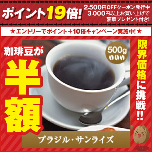 全品ポイント19倍!! 最大2,500円クーポン 【半額SALE】【澤井珈琲】太陽の王国はブラジルの完熟豆を厳選したブラジルサンライズ500g入り (コーヒー/コーヒー豆/珈琲豆)ストレート 優しい味わい コーヒー豆単品半額 楽天スーパーSALE