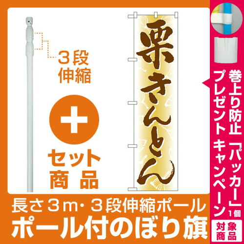 【プレゼント付】【セット商品】3m・3段伸縮のぼりポール(竿)付 スマートのぼり旗 栗きんとん (22266)