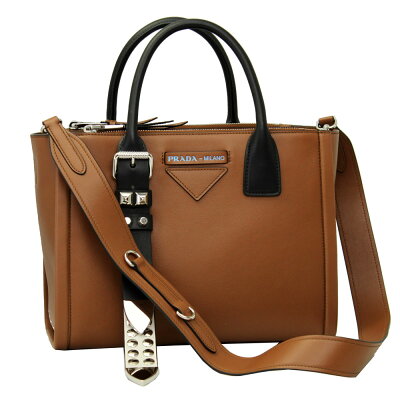 プラダ バッグ レザー 1BA175 PRADA コンセプトバッグ 2WAYハンド/ショルダーバッグ スタッズ メタルパーツ 1BA175 GRACE LUX COGNAC+BIANCO